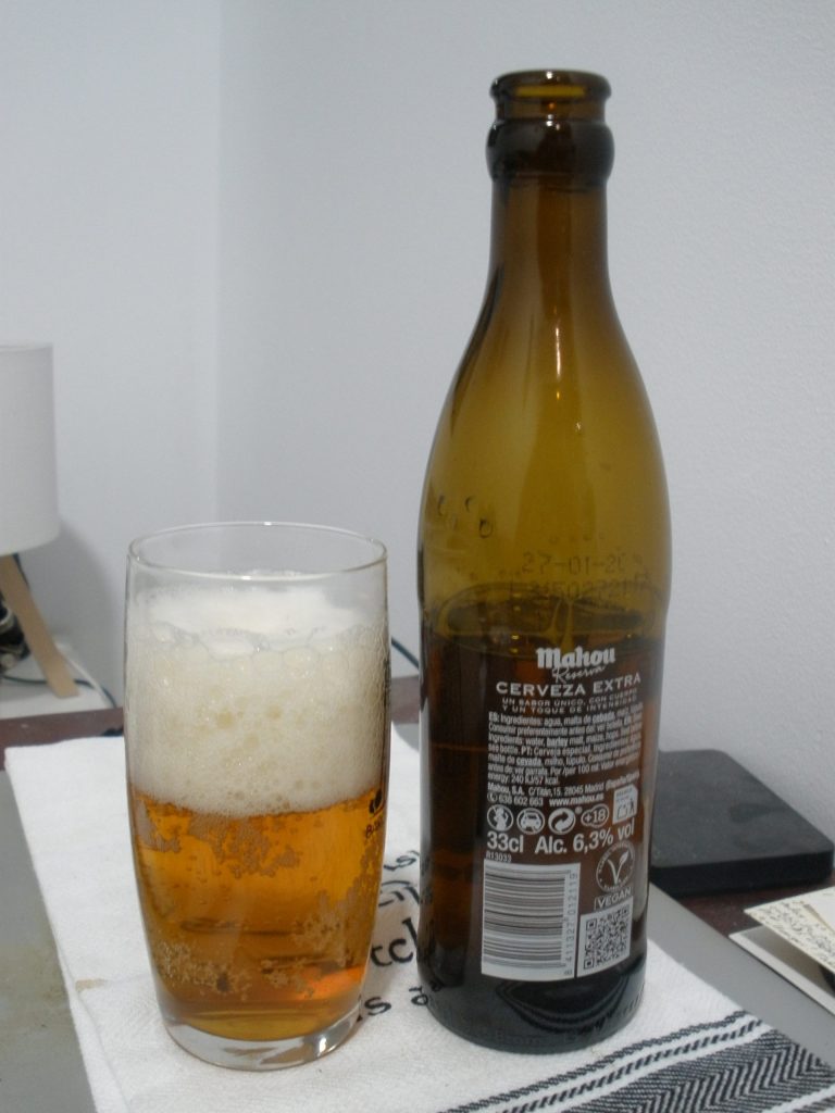 This bottle came as a gift, which is the only reason I have it. I won’t look a gift beer in the … bottlemouth. Anyway, it’s one of Mahou’s special beers, Reserva, with the tiny statement “cerveza extra” on the back. It is a nice bottle, I have to say, a little bit artsy and somewhat of a retro silhouette. I wonder if those old-style beers Mahou was producing more than a good ten years ago were the beta version of this one. One of them anyway, the one that was eventually just called Cerveza Extra. I enjoyed those past-referencing labels they used, reminding their customers of the company’s history and footprint in the city. Maybe they stopped using those names because people got salty that they moved out of town for more modern facilities. Just for reference, those beers were Amaniel – Lager, Maravillas – Extra, Jacometrezo – Ale, and Marcenado – Wheat. They are with their blander names but retro labels on this page: http://www.legaval.es/coleccion-casimiro-mahou/