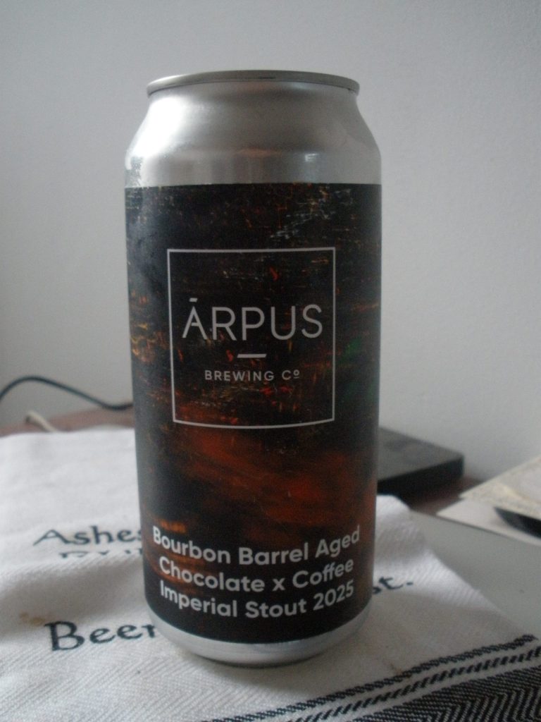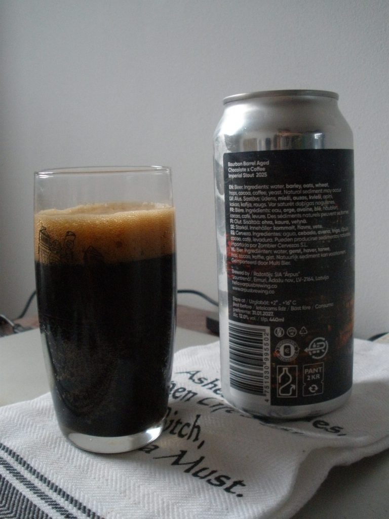 It’s practically spring in Madrid, rain almost never stops, the temperatures are in fact quite pleasant, and yet it still feels like the beginning of the year. I turn to my stouts for stabilization. While many have cheeky, punny names, this one is very straightforward – Bourbon Barrel Aged Chocolate x Coffee Imperial Stout 2025. It’s one of Arpus’s special brews, a bit more expensive than I typically allow myself, but I’m thinking of it as an appeal to karma. And it does sound like a damn special beer. Arpus makes some real crowd pleasers, in spite of their unpretentious naming. Even people who aren’t especially fans of beer like their sours. I have been witness to such miracles.