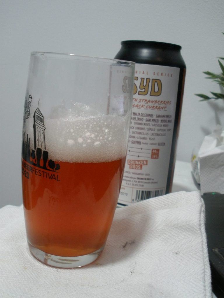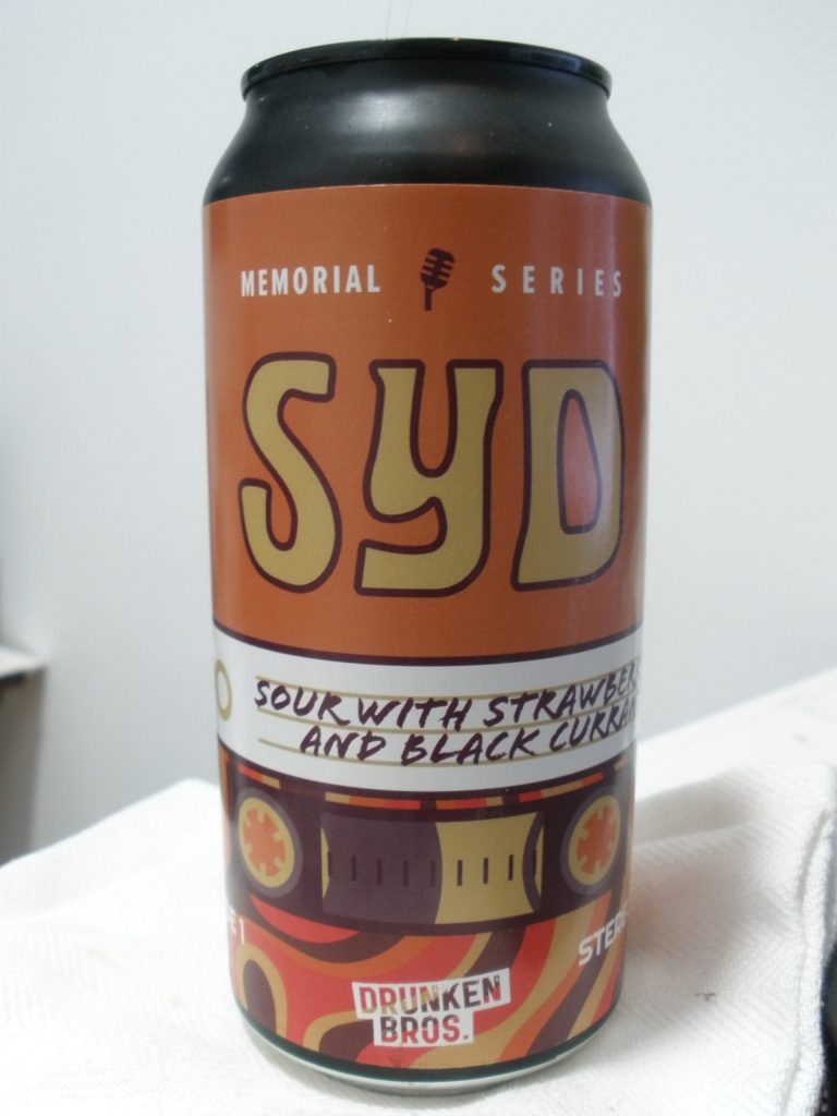 I went looking for stouts as usual, and lo and behold, they have appeared for the fall! We will see them soon enough. I got caught up with a sour first, a strawberry and black currant number. Funny how they get stored near the stouts, maybe they’re going alphabetically. This sour bears the name Syd and is part of Drunken Bros. Memorial Series, which I didn’t think about at first, but now I suppose it must be named for a certain punk musician. Well, no, after a little research it is a different musician altogether that the beer is namesake for. Wrong spelling for the punk’s name anyway. In any case, it does look more fitting for this other Syd, with the somewhat psychedelic design on the can and the ruddy color scheme.